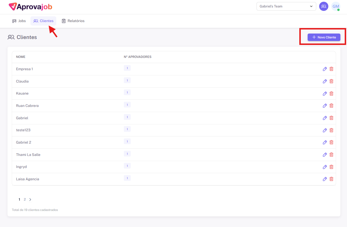 Antes de criar qualquer job, você precisa cadastrar o cliente que receberá a aprovação (caso ele não esteja cadastrado na sua conta).