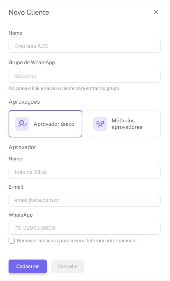 - Aprovador único: Apenas uma pessoa aprova (mais rápido e evita retrabalho)