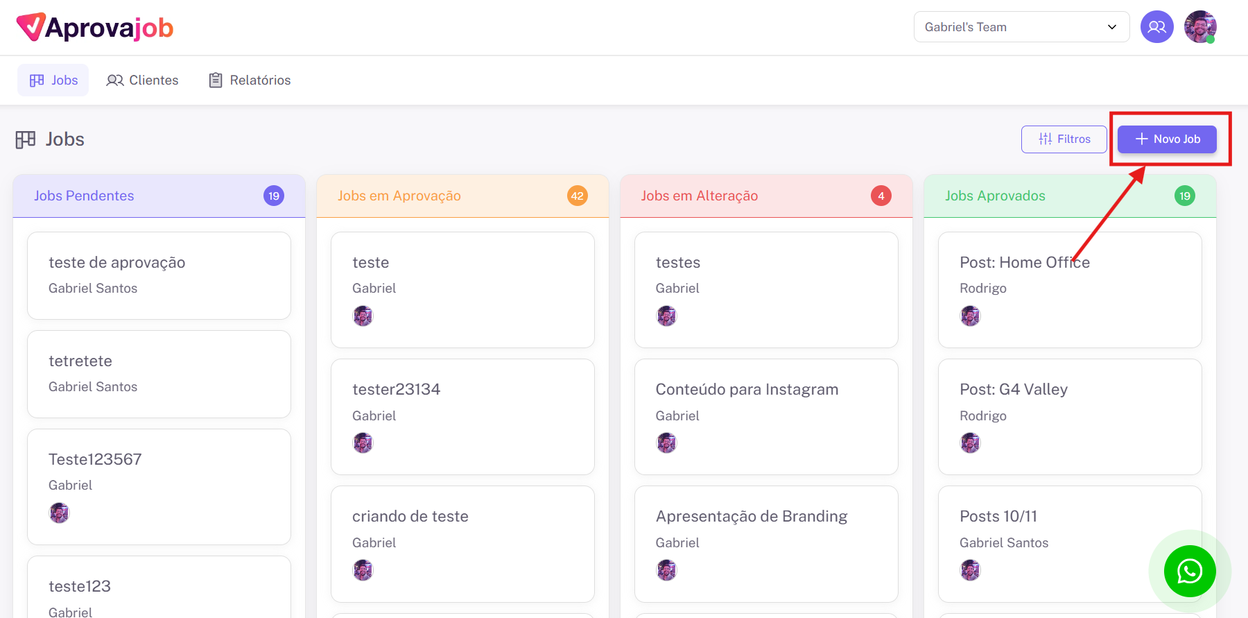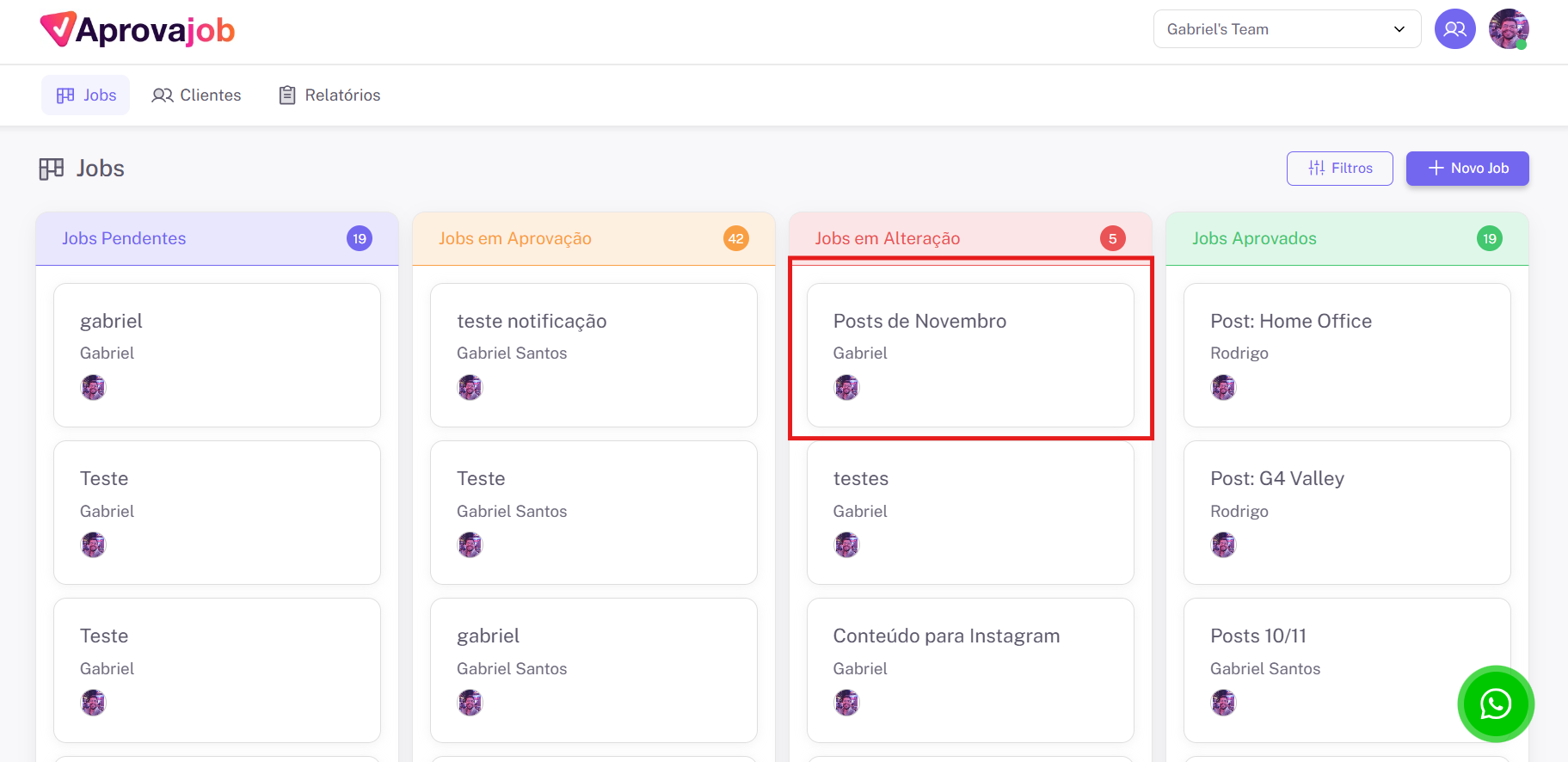- O card do job vai para APROVADOS