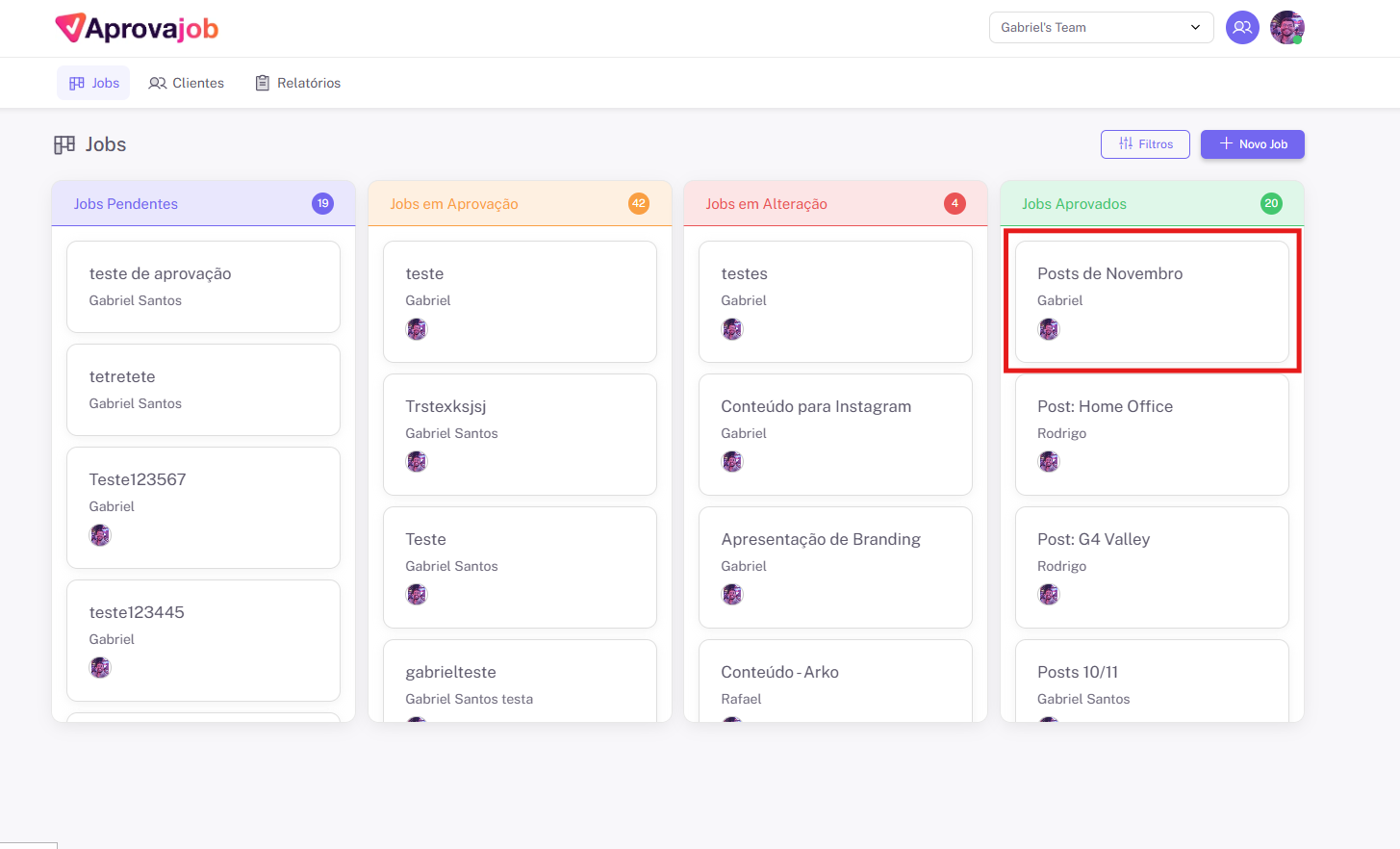 O job então vai para a coluna APROVADOS.
