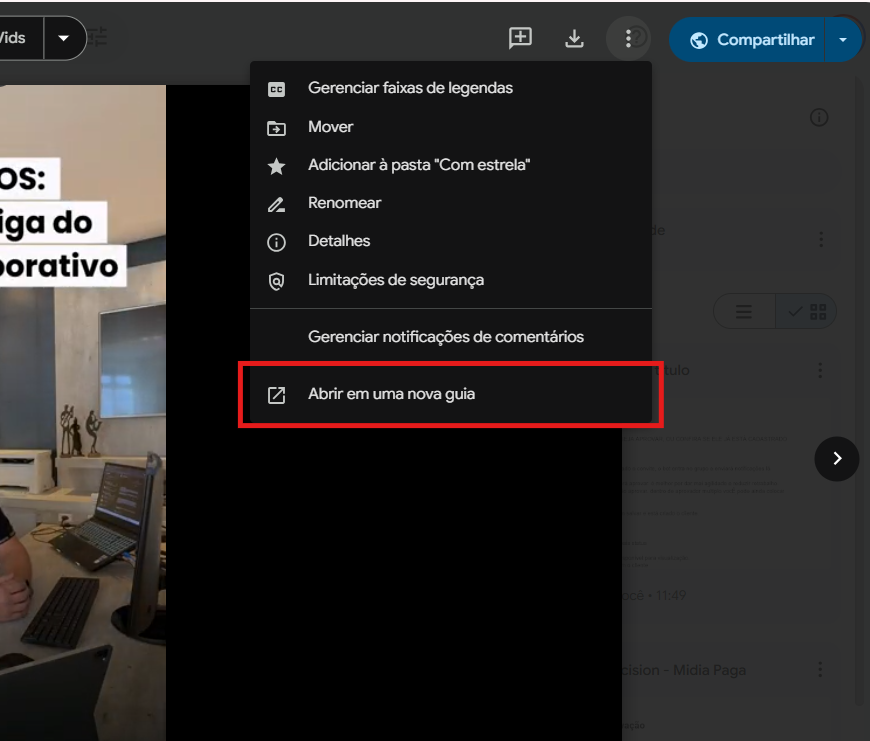 - Clique em Abrir em nova janela