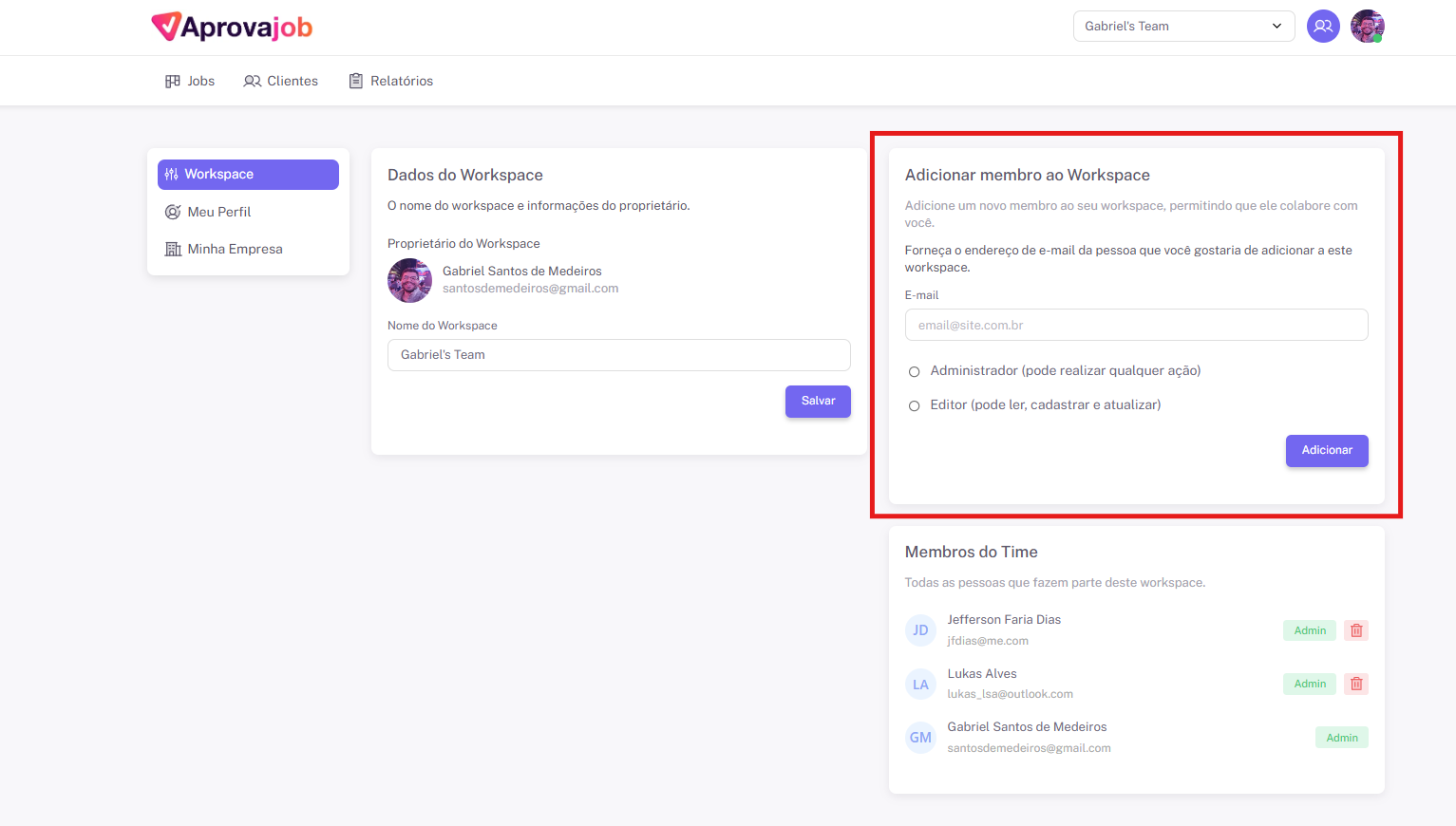 Para adicionar pessoas ao seu workspace: